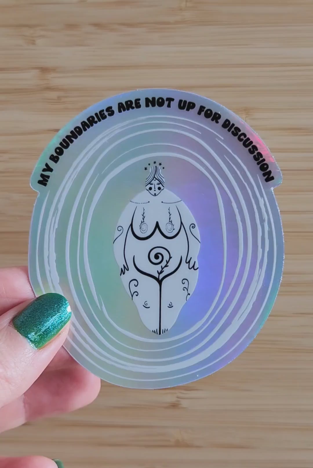 Holographic die cut sticker made from thick premium vinyl. It is coated with a protective laminate that makes it resistant to fading, scratching, and tearing. It’s water and heat-proof - stick it on your go-to quencher tumbler! The glossy finish adds a cool look to it. That said, the statement in it is the real essence!